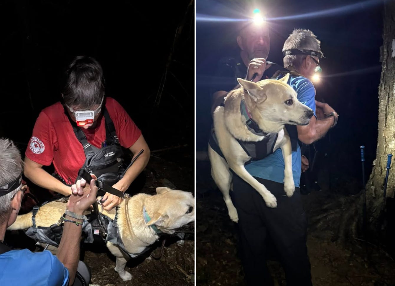 To be clear, there was no lack of love and commitment from the owner. If we hadn’t gone to help, he would have spent the night up there with his dog. Worth noting, he was carrying a headlamp and provisions so wasn’t unprepared - except that he was missing the dog sling.