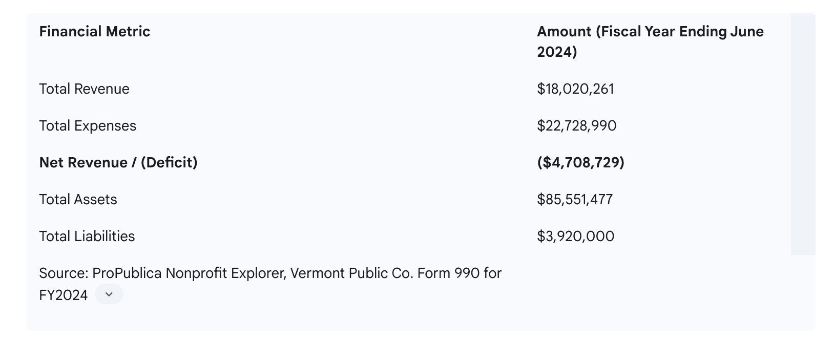 While this external shock has been cited as the immediate trigger, deeper financial records indicate that Vermont Public was operating with a substantial deficit even before the federal cuts took effect.