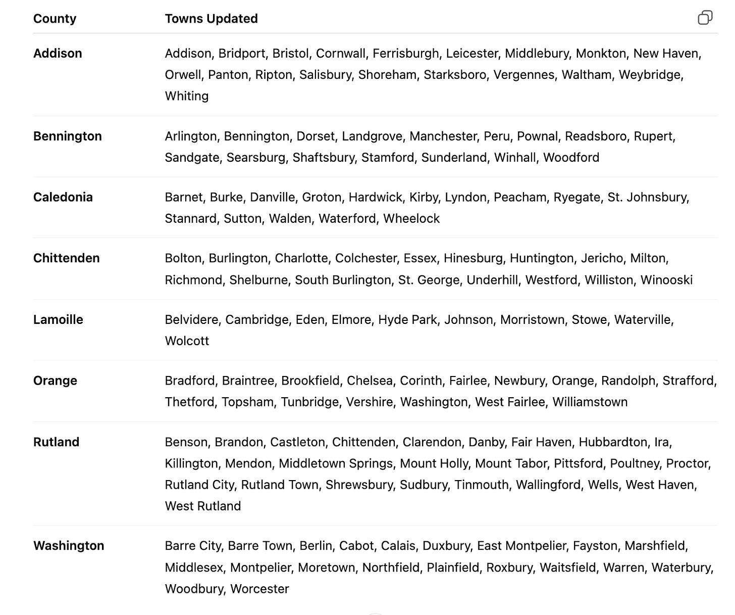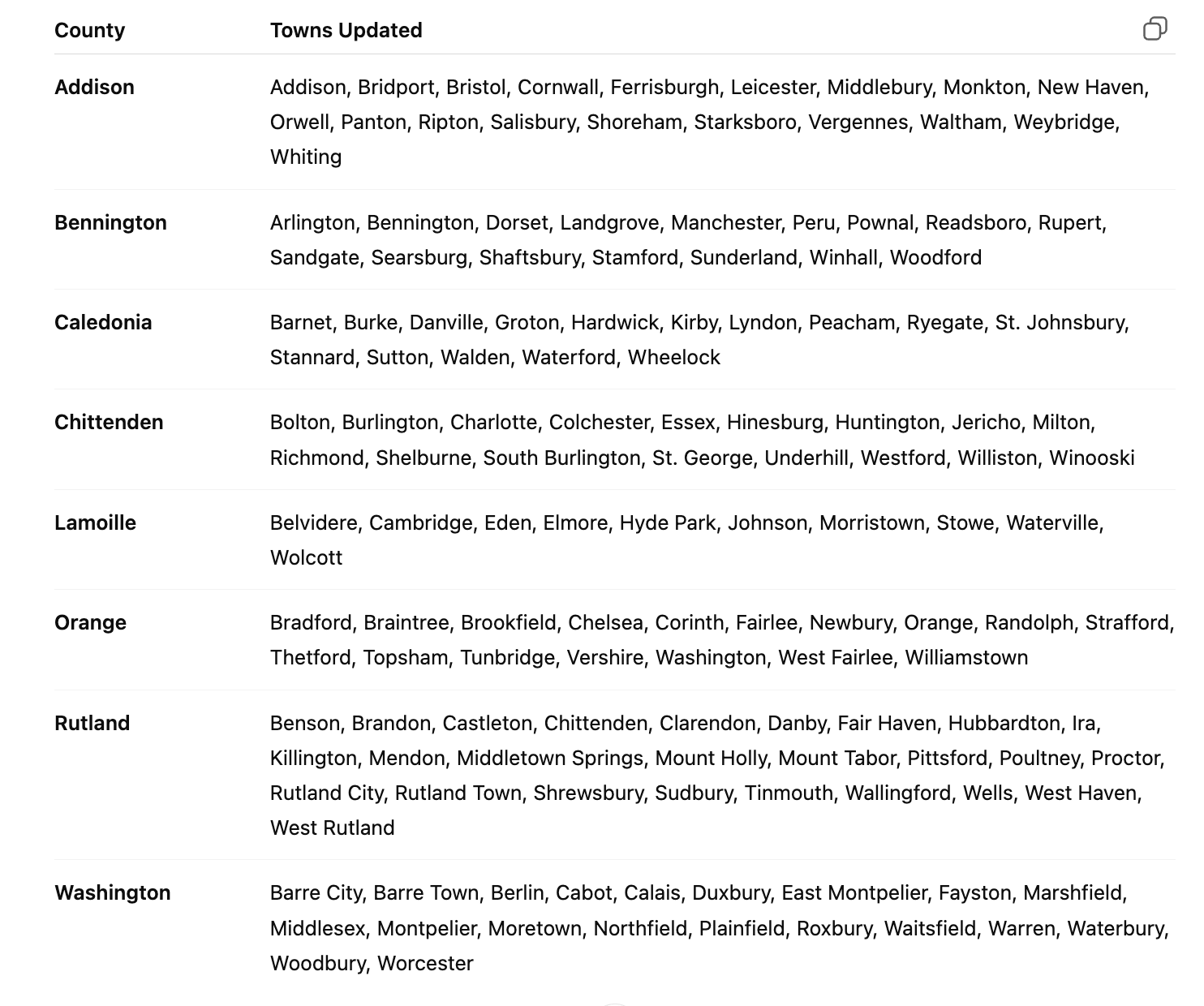 Updated Counties and Towns