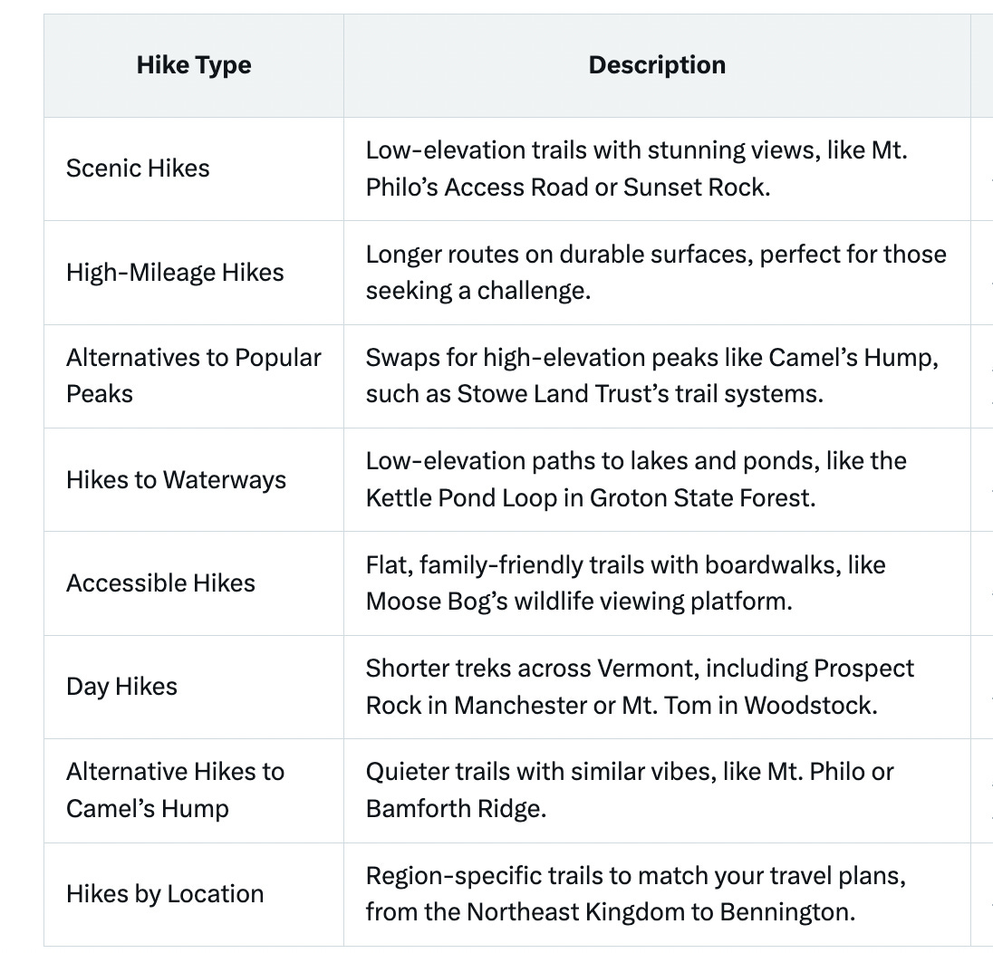 The Green Mountain Club offers a variety of hike recommendations tailored for mud season, from scenic vistas to accessible paths. Below is a table of options, all available on their website at www.greenmountainclub.org. Whether you’re craving a high-mileage trek or a family-friendly stroll, these hikes will keep you moving while respecting Vermont’s trails.