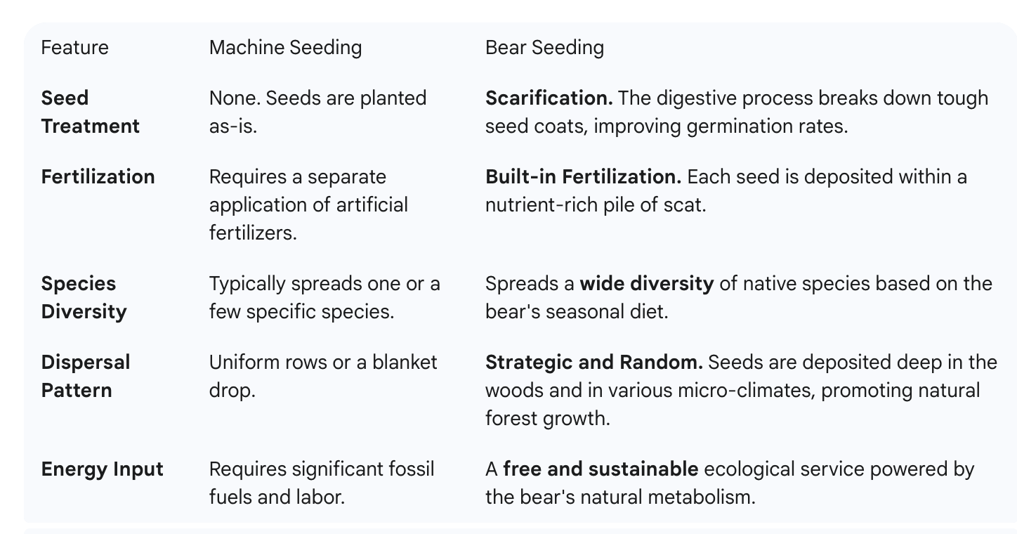 Here's how a bear's natural planting process compares to a machine: