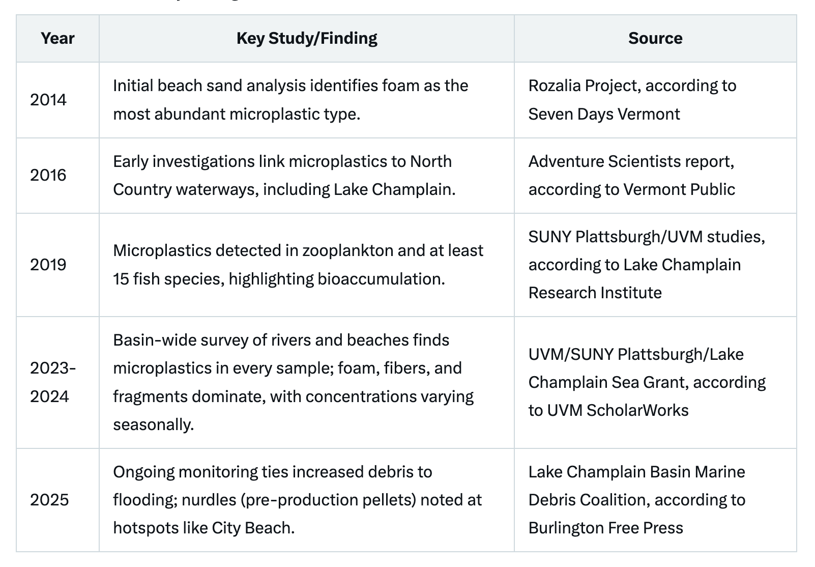 Progress is underway. Vermont's 2024 Flood Safety Act (Act 121) bans the sale and repair of uncontained Styrofoam docks starting in 2024, phasing out a major foam source to prevent fragmentation, according to WCAX. Since the state's 2020 single-use plastics ban, items like bags have plummeted in waterways, according to Ocean Conservancy. Federal efforts, including a proposed $55 million reauthorization of the Lake Champlain Basin Program, could fund advanced monitoring and cleanups, according to Congress.gov bill texts.