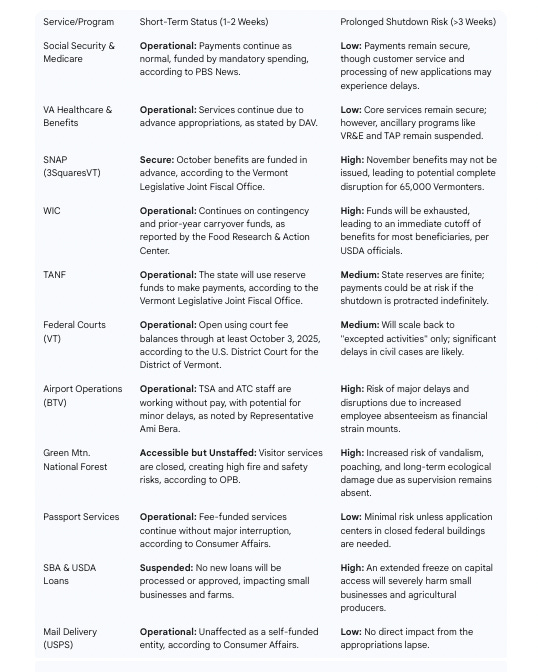 As of October 1, 2025, the federal government is shut down. For Vermont, this presents a two-stage problem: a manageable short-term disruption that could quickly become a severe long-term crisis.