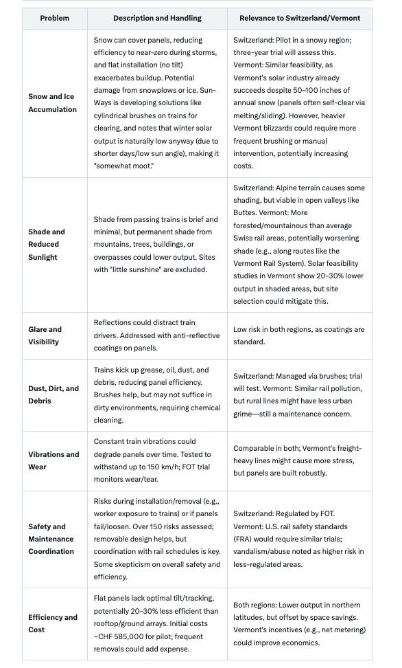 The Vermont Agency of Transportation, which oversees rail planning, might partner with innovators like Sun-Ways to test it on low-traffic lines. In the end, this Swiss spark could light a way forward for Vermont's energy future—one that honors our NIMBY instincts while advancing the green agenda. It's not the whole solution; we'll still need diverse renewables. But as we grapple with rising floods and heating bills, turning our underused rails into power plants feels like a win-win. Time for Vermont to get on board?