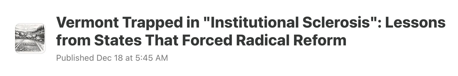 Twelve Vermont Stories from 2025 That Explain the State We’re In — and the One Ahead"We flatter ourselves that Vermont is the antidote to Washington’s wreckage, yet we end 2025 building political silos so tall they obscure the common ground."Compass VermontJan 01, 2026ShareSubscribeREAD THE FULL STORY HEREREAD THE FULL STORY HEREREAD THE FULL STORY HERE READ THE FULL STORY HERE SubscribeREAD THE FULL STORY HERE READ THE FULL STORY HERE READ THE FULL STORY HEREREAD THE FULL STORY HERE READ THE FULL STORY HEREREAD THE FULL STORY HEREREAD THE FULL STORY HERE SubscribeREAD THE FULL STORY HERE