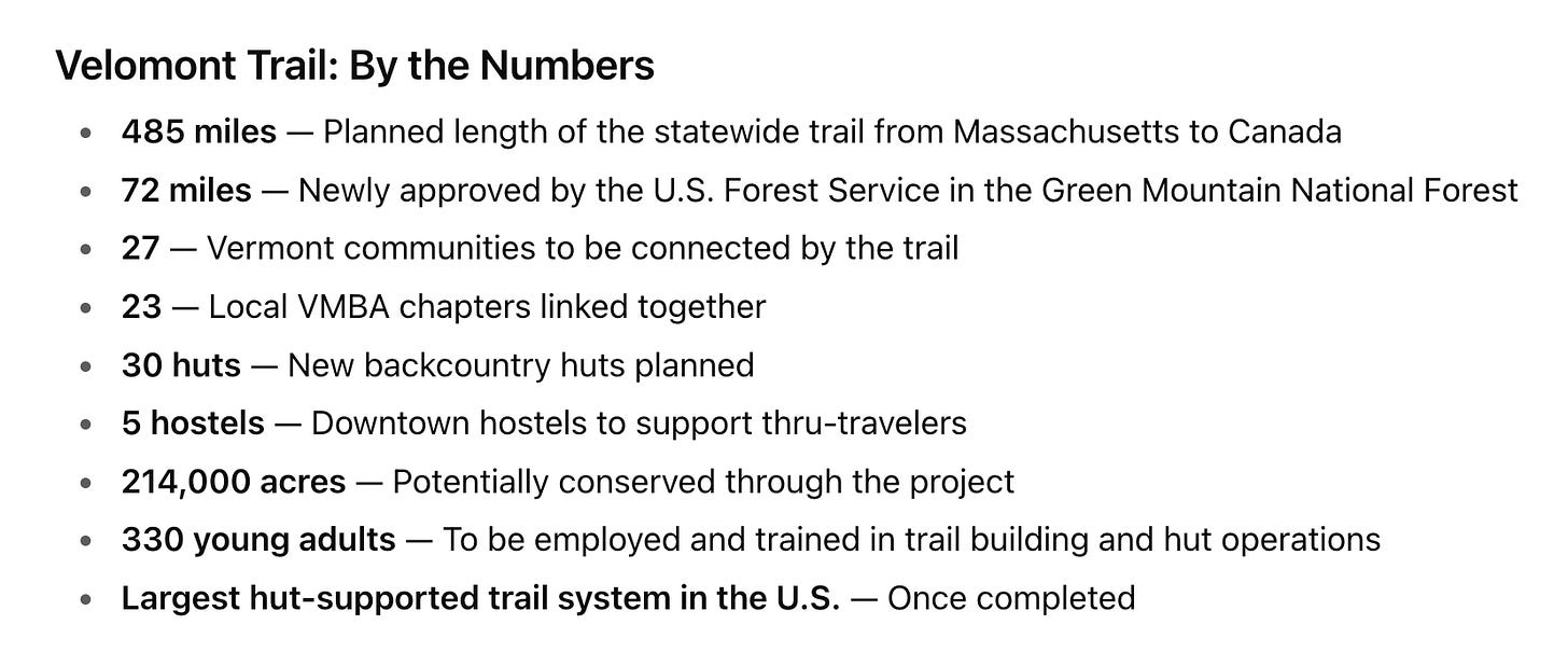 Supporters note that once completed, the Velomont will be the largest hut-supported trail network in the United States, with Vermont serving as the proving ground for a new model of recreation-based rural revitalization.