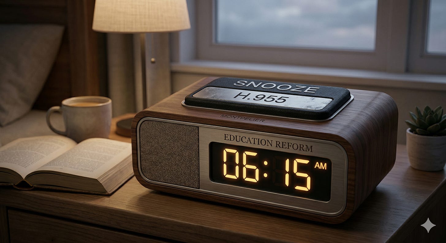 Buried in the fine print: H.955 moves the effective date of Vermont’s new education foundation formula — as originally established in Act 73 of 2025 — from July 1, 2028 to July 1, 2030. That detail matters more than anything else in the bill.