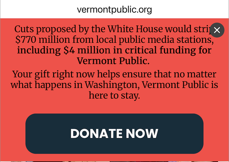 VPR’s fundraiser, running through June 11, emphasizes the importance of listener contributions to counter the potential loss of federal funds. “We're asking you to step up and you can do something about this. You can support Vermont Public in all the services that we bring to you by giving a donation now.