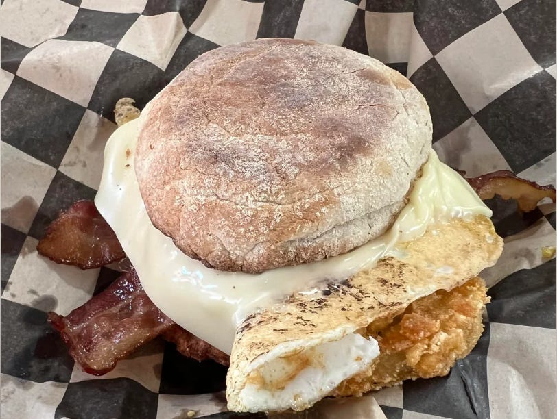 Kountry Kart Deli in Burlington: Nostalgic icons like the "Rise N Shiner," "Barnyard Shiner," or "Triple Threat Shiner" (bacon, sausage, ham, multiple eggs, hash browns, and cheese). A late-night staple that's gone downhill for some but remains a core memory.
