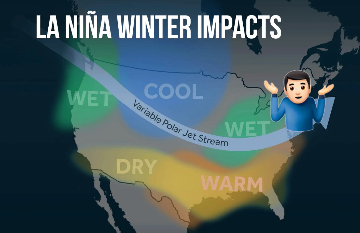 NOAA’s own projections show the confidence in La Niña persisting through the core winter months drops to just 54%—barely more than a coin toss.
