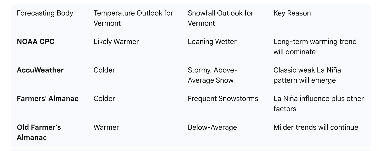 The result is a season loaded with uncertainty, but by understanding the key players and the “wildcard” factors at play, Vermonters can get a clear picture of why the experts are divided and what the most likely outcomes are for the Green Mountain State.