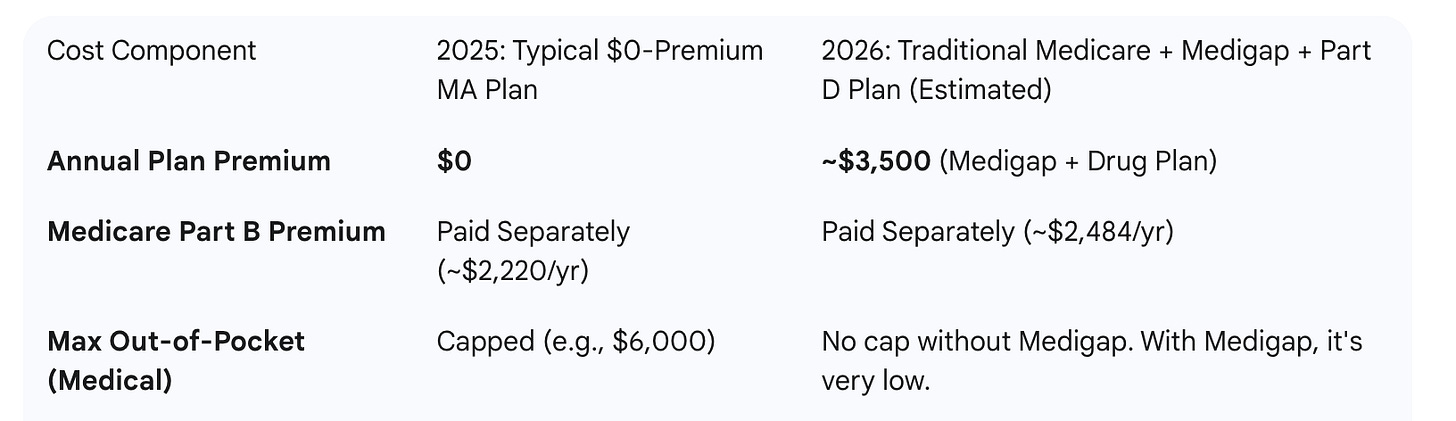 As this estimate shows, a person seeking comprehensive coverage could see their annual premium costs more than double, increasing by over $3,700 per year. This affordability crisis is the central challenge facing Vermont seniors. Many may be forced to “go bare” and rely only on Traditional Medicare, exposing themselves to catastrophic financial risk.