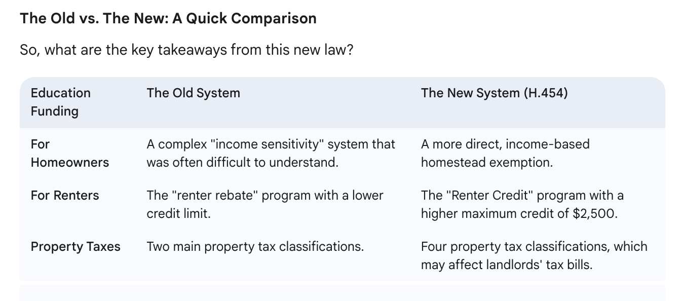 In short, while the headlines may focus on property owners, Vermont's new education funding law has a significant impact on renters as well. The increased Renter Credit is a key provision to be aware of, but it's also important to understand how the changes to your landlord's taxes might affect your rent. As with any new law, the full impact will become clearer as it is implemented. For now, renters should keep an eye on their rental agreements and be sure to apply for the new, more generous Renter Credit.