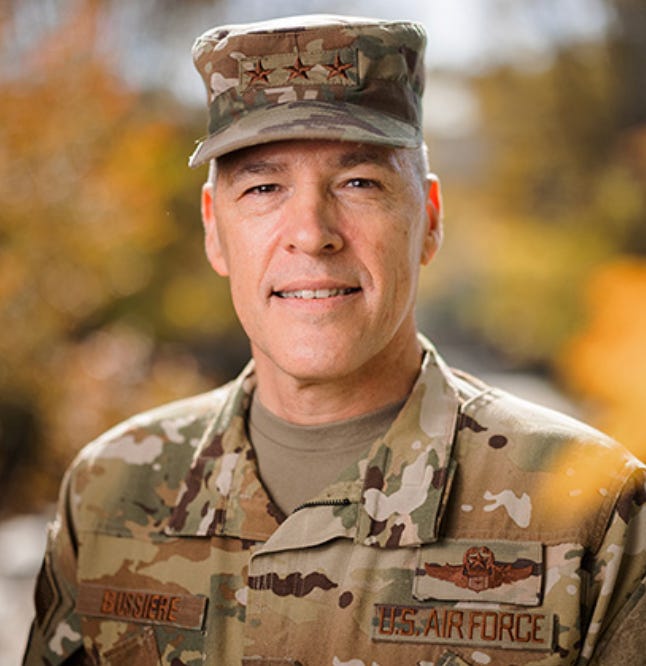 His career led to high-level command responsibilities. At the time of his retirement, General Bussiere commanded Air Force Global Strike Command (AFGSC), overseeing two-thirds of the United States’ nuclear triad, including all Minuteman III intercontinental ballistic missiles (ICBMs) and the entire strategic bomber fleet, according to Air Force Global Strike Command. He is also a command pilot with over 3,400 flight hours who flew combat missions in multiple operations, according to AF.mil.