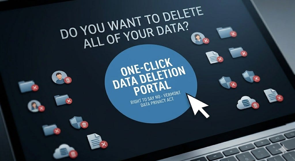 H.211 is modeled after California’s 2023 Delete Act, which created a centralized online portal where residents can submit a single request to delete their data from every registered broker at once. Vermont would become the second state with such a mechanism — eventually.