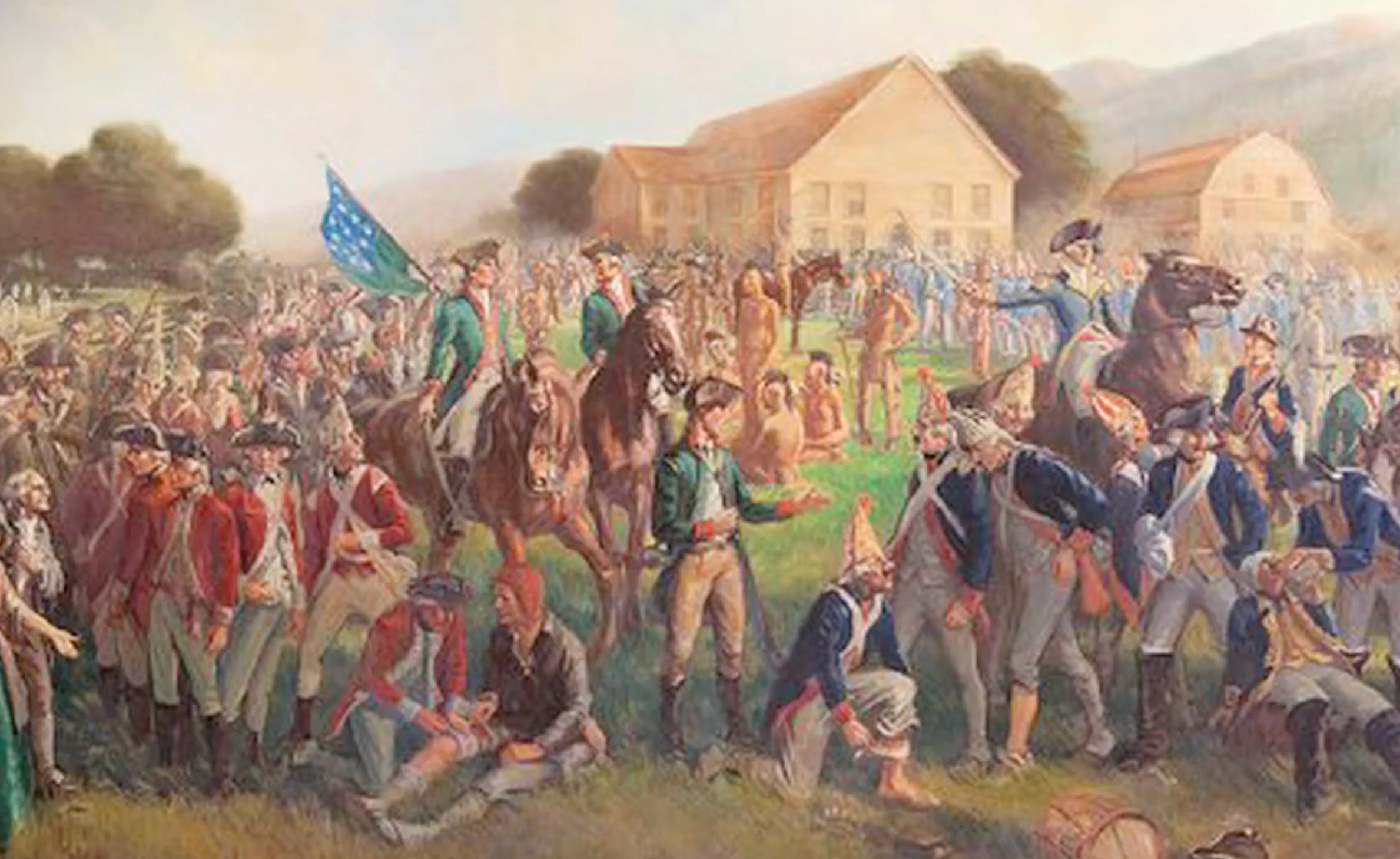 After Burgoyne recaptured Fort Ticonderoga “without a fight,” American forces retreated through Vermont. The Battle of Hubbardton is listed as a “Key Event” in the episode—the only Revolutionary War battle fought entirely on Vermont soil.