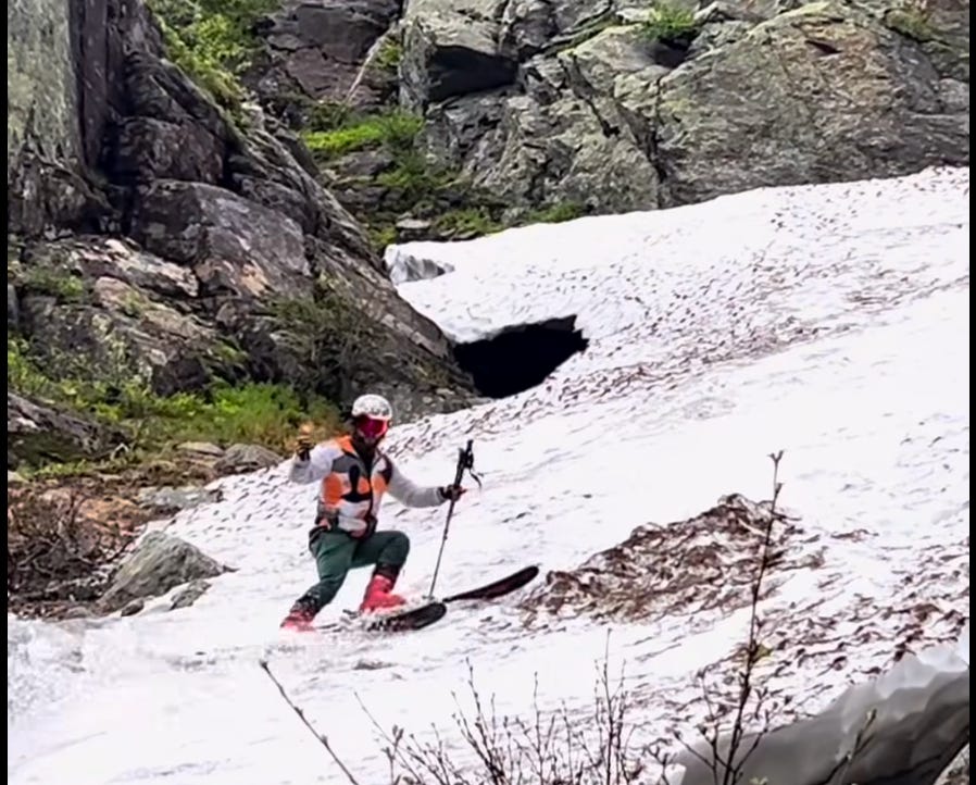 His season wasn’t just about racking up days; it was a testament to his deep connection to the sport, the mountains, and the community that fuels his passion.Evan’s adventure took him to iconic spots like Tuckerman Ravine, where he capped his season with a celebratory descent on July 4th, proclaiming, “That’s a wrap on my skiing in the east!” In a Facebook reel, he thanked his followers for sticking with his “ridiculous videos all winter long,” promising to be back on snow by November.