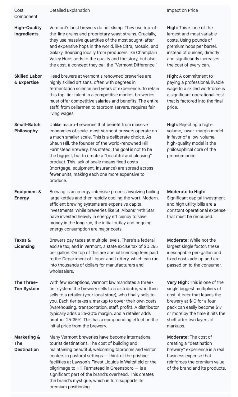 Here is a detailed breakdown of the components that build the price of a premium Vermont craft beer: